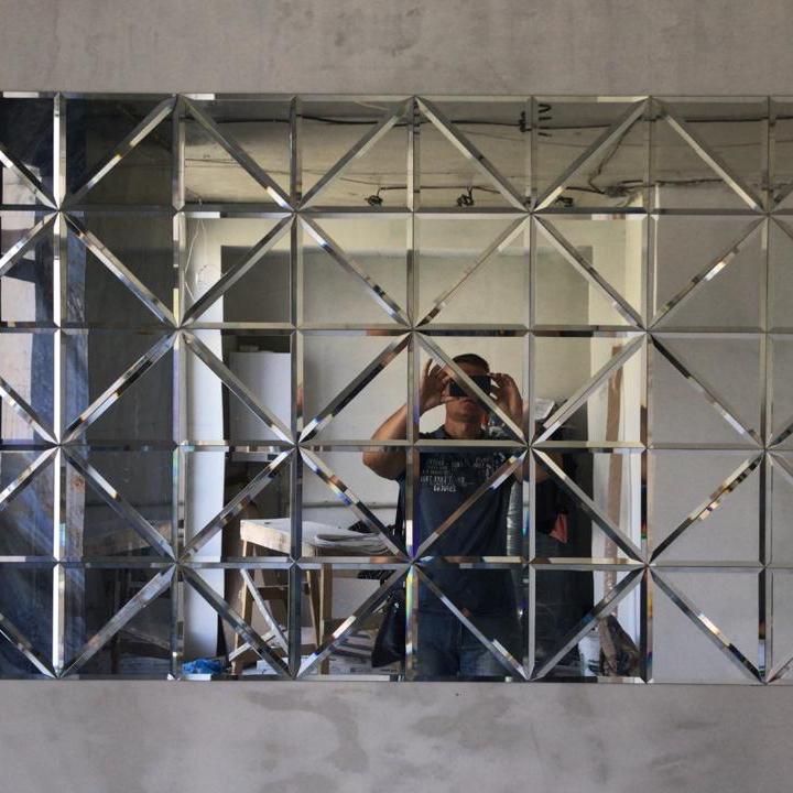 Использована серебряная зеркальная плитка «вытянутый ромб».