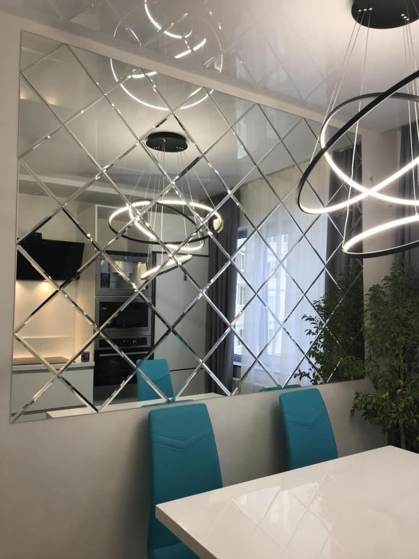 Хорошие дизайнеры проделывают с помощью зеркальных панно удивительные трюки. Расположив ромбовидные элементы над обеденной зоной, можно получить эффект превращения маленькой кухни в большую столовую. Также зеркальное панно способно спрятать инженерные коммуникации. Сделать дизайн нетривиальным. Выполнить роль дополнительного источника рассеянного света.